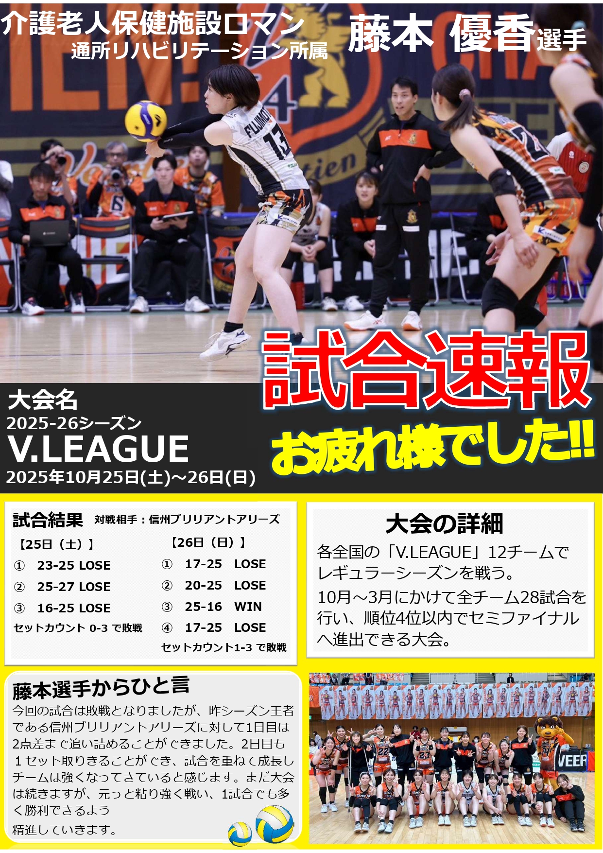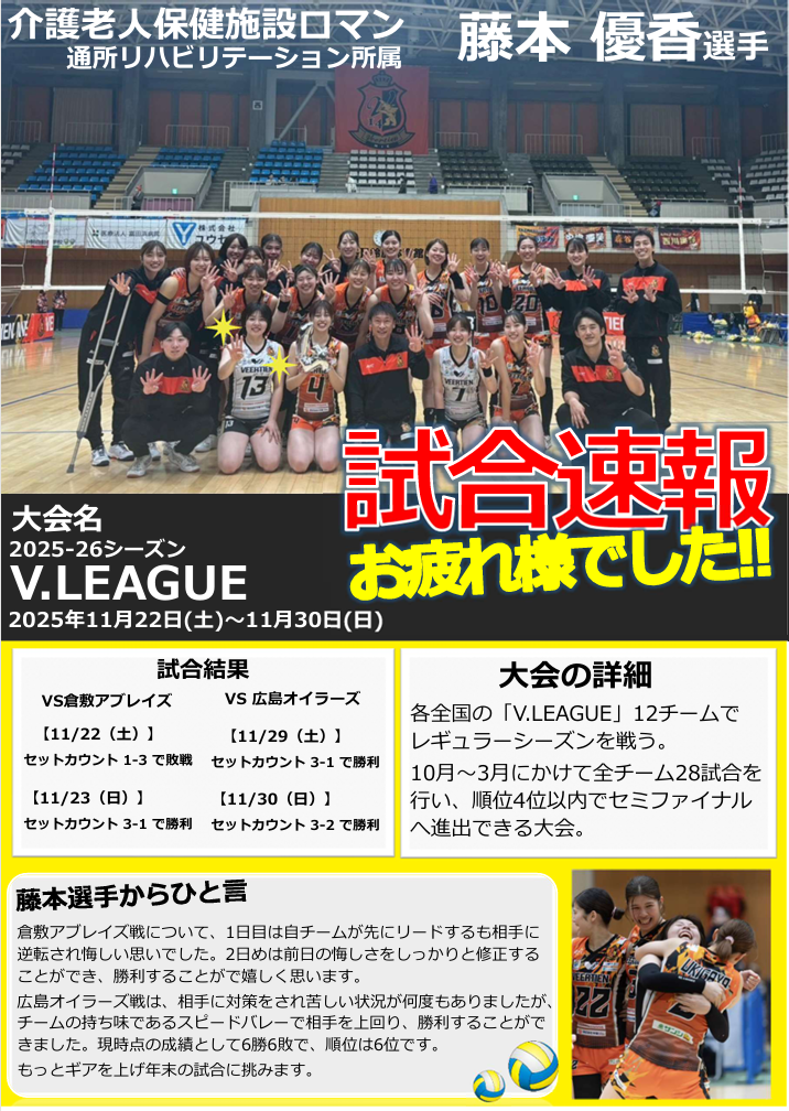 バレーボール 藤本CW 試合結果 (VS倉敷アブレイズ VS広島オイラーズ) |