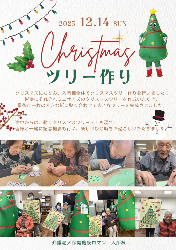 | 入所棟クリスマスイベント | ロマン 花の定期便 12月のお花 | 圧倒的福利厚生!令和7年度冬季賞与と クリスマスケーキ |