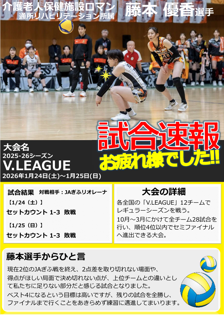 バレーボール 藤本CW試合結果 (VSJAぎふリオレーナ) |